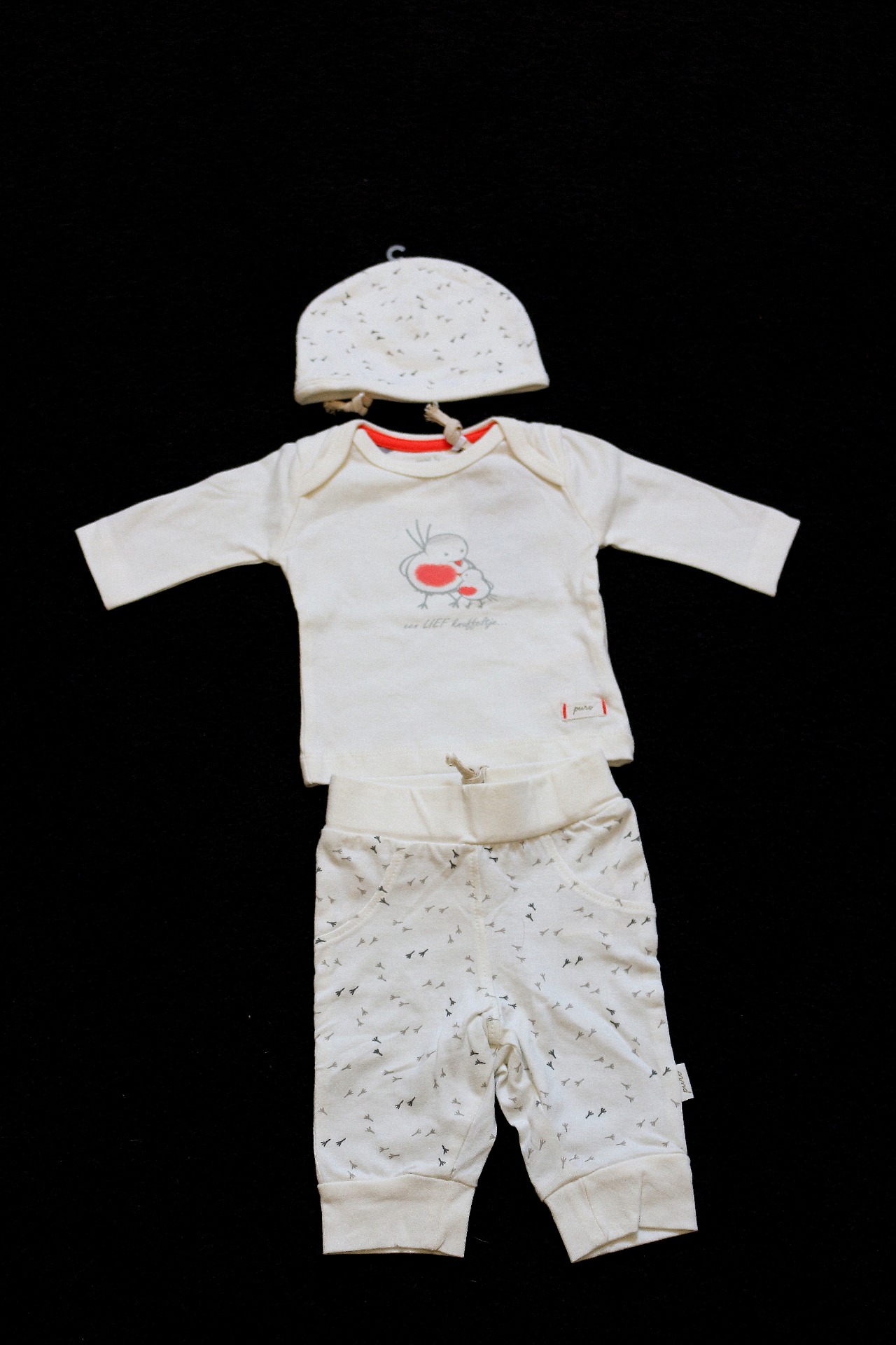 Dit setje heb ik gekregen van mijn zussen en hun mannen met mijn verjaardag. Een súperschattig neutraal eerste setje. ( we wisten toen namelijk nog niet dat we een jongetje kregen)